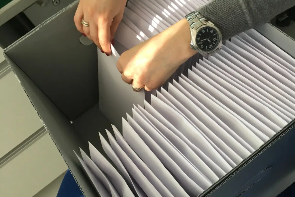 - Arquivamento vertical: este método utiliza armários ou estantes verticais para armazenar documentos, geralmente em pastas suspensas ou caixas organizadoras.